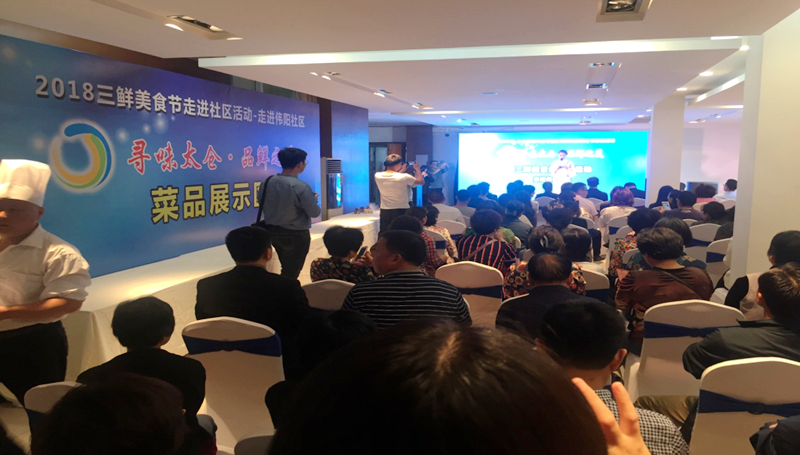 5月22日,“寻味太仓、品鲜之美”2018三鲜美食节在太仓市城厢镇伟阳社区举办。此次活动由太仓市烹饪餐饮行业协会组织,来自陆渡宾馆、新小地方、华旭假日酒店、新梅华、兰德莱茵、双凤孟家羊肉馆、星晨大酒店、世代大酒店八家企业的名点名厨大师,走进伟阳社区,为社区居民烹饪太仓老味道菜肴,交流太仓美食的烹饪技巧。